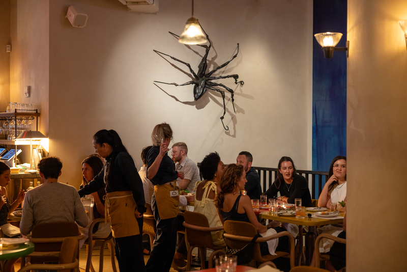Guests may enter discreetly through a private entrance on Prince Street or arrive via the main restaurant, offering flexibility for every occasion. The space is further distinguished by a monumental wall-drawing by Pat Steir , while a curtain and room divider created exclusively for Manuela by renowned artist and designer Duro Olowu lend both privacy and character.